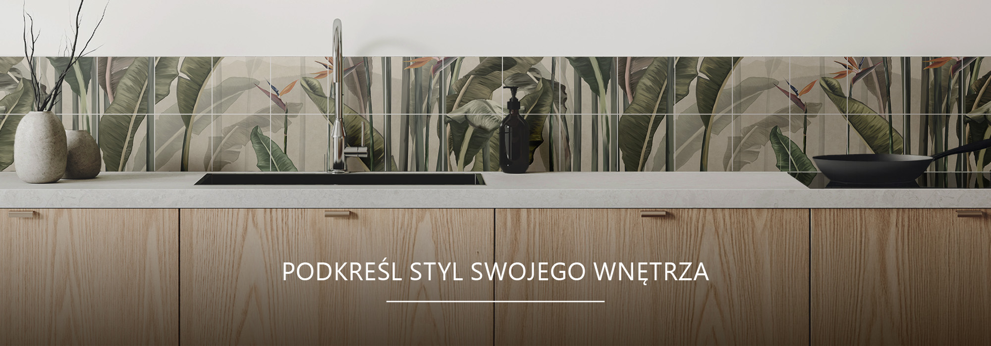 Przedstawiamy naklejki na kafelki, które po ułożeniu tworzą niezwykły, poziomy obraz z motywem Tropikalne liście w aranżacji. To doskonały wybór dla osób poszukujących oryginalnej i praktycznej dekoracji kuchennej lub łazienkowej. Poziomy wzór idealnie nadaje się do ozdobienia przestrzeni nad blatem czy wokół wanny – doda wnętrzu głębi i świeżości.